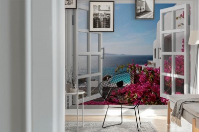 Fototapeta 3D okno z kwiatami z pięknym widokiem