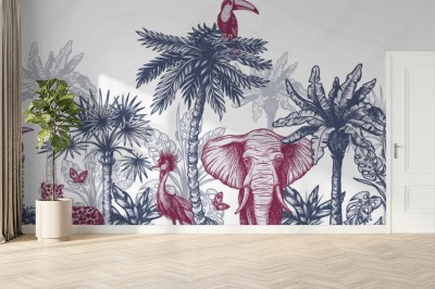 Fototapeta Dżungla vintage w kolorach szaro-różowych