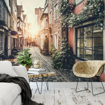 Fototapeta Europejska uliczka o zachodzie słońca z efektem retro