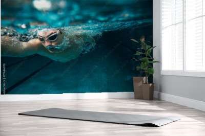 Fototapeta Mężczyzna pływak na basenie. Zdjęcie podwodne.