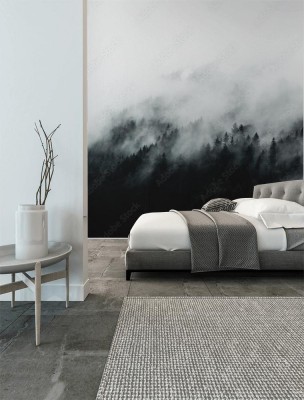 Fototapeta Mroczny krajobraz górskiego lasu za mgłą