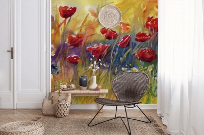 Fototapeta Piękne maki na łące - malarstwo artystyczne