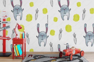 Fototapeta Słodki króliczek i marchewka na białym tle