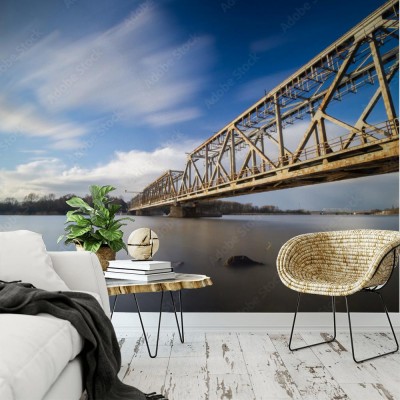 Fototapeta Stary kolejowy most zwodzony na Odrze w Szczecinie