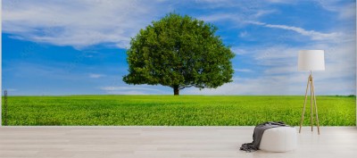 Fototapeta Trawiaste wzgórze i rozłożyste drzewo
