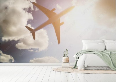 Fototapeta Widok z dołu lecącego samolotu wśród chmur
