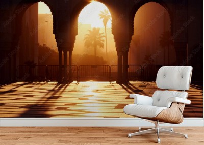 Fototapeta Wielki meczet Hassana 2 o zachodzie słońca w Casablance