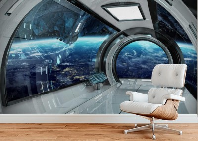 Fototapeta Wnętrze statku kosmicznego z widokiem na Ziemię