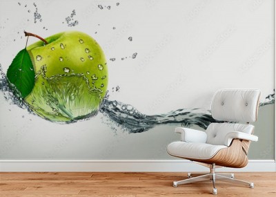 Fototapeta Zielone Jabłko dryfujące wśród wody