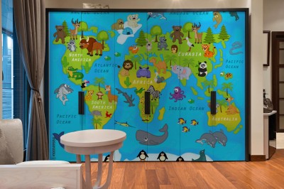 Naklejka na szafę Mapa świata z słodkimi zwierzętami