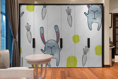 Naklejka na szafę Słodki króliczek i marchewka na białym tle