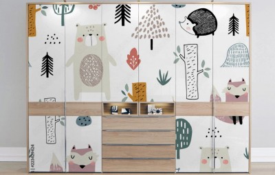 Naklejka na szafę z jednolitym wzorem dziecięcym w leśne stworki