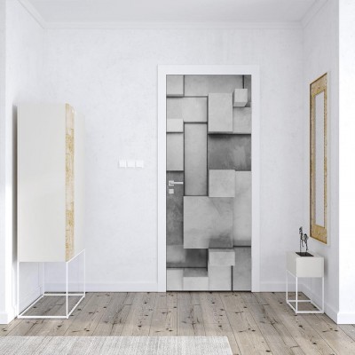 Naklejki na drzwi Szara ściana z betonowych bloków