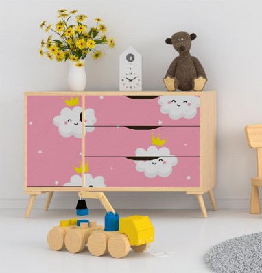 Naklejki na meble dla dziewczynki w słodkie chmury i gwiazdy na różowym tle