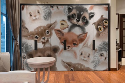 Naklejki na meble do pokoju dziecka z malowanym akwarelą portretem leśnych zwierzaków