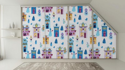 Naklejki na meble z ilustracją zimowego miasteczka