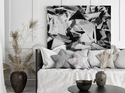 Obraz na płótnie Czarno białe tło z fragmentów szkła.