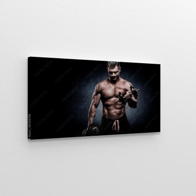 Obraz na płótnie Dobrze zbudowany sportowiec ćwiczący bicepsy