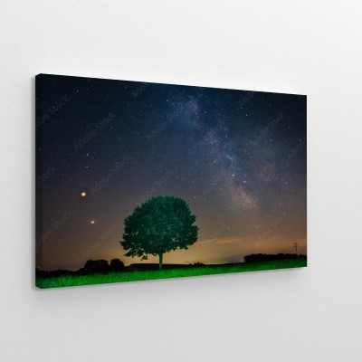 Obraz na płótnie Droga Mleczna z samotnym drzewem na wzgórzu