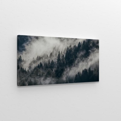 Obraz na płótnie Gęsta poranna mgła w alpejskim krajobrazie z jodłami i górami.