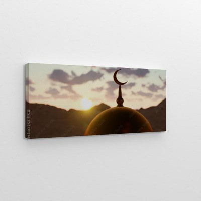 Obraz na płótnie Rehal z otwartym Koranem na muzułmańskim dywanie modlitewnym w pomieszczeniu