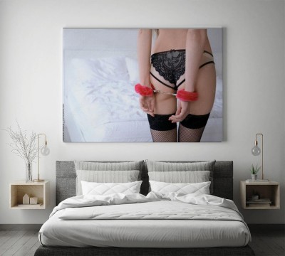 Obraz na płótnie Kobieta ubrana w seksowne puszyste kajdanki
