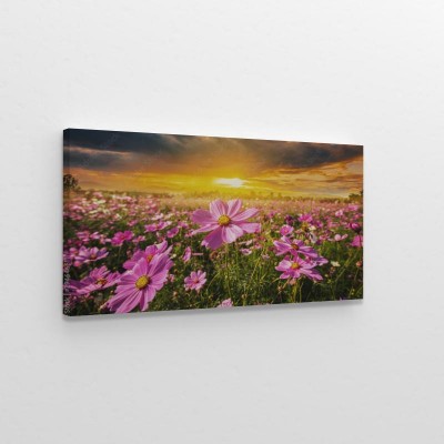 Obraz na płótnie naturalny krajobraz zachodzącego słońca na polu kwiatów