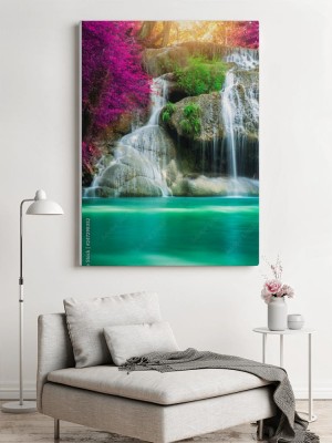 Plakat Niesamowity w naturze, piękny wodospad w kolorowym lesie jesienią w sezonie jesiennym