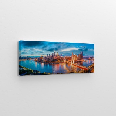 Obraz na płótnie Nocny krajobraz architektury miasta i kolorowe światła w Hong Kongu