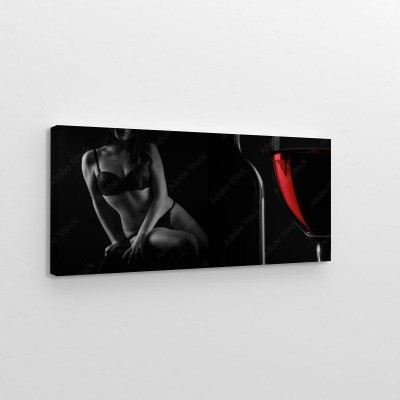 Obraz na płótnie Piękna sylwetka kobiecego ciała i kieliszek czerwonego wina
