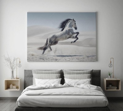 Obraz na płótnie Piękny biały koń na urokliwej pustyni