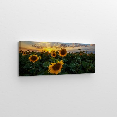 Obraz na płótnie Piękny zachód słońca nad polem słoneczników