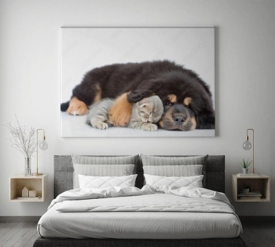 Obraz na płótnie Pies tuli śpiącego kotka