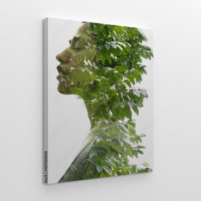 Obraz na płótnie Portret przenikania liści i kobiety