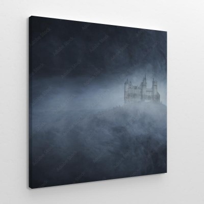 Obraz na płótnie Stary zamek na ciemnym i mglistym tle