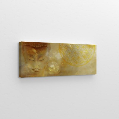 Obraz na płótnie Sztandar Buddha z kwiatem życia w złotym świetle