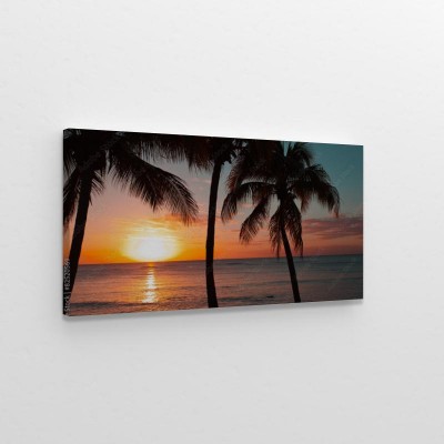 Obraz na płótnie Zachód słońca pod palmami kokosowymi Mauritiusa