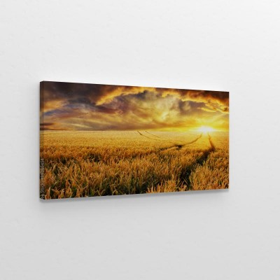 Obraz na płótnie Zmierzch na polu, ostrość na przedpolu