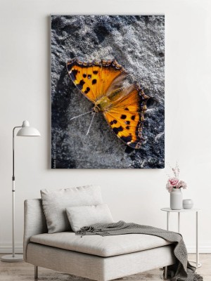 Obraz na płótnie Żółty motyl na czarno-białym tle