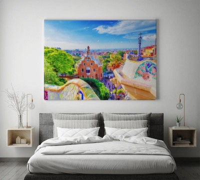 Obrazy do salonu Letnia scena efektownej architektury Barcelony