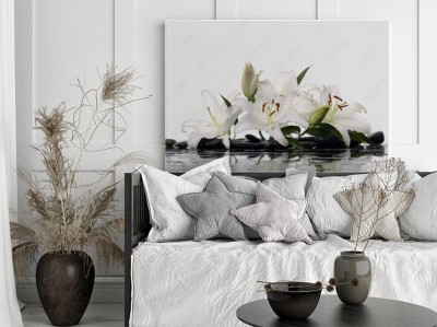 Obrazy do salonu Lilie Madonny z kamieniem spa i odbiciem