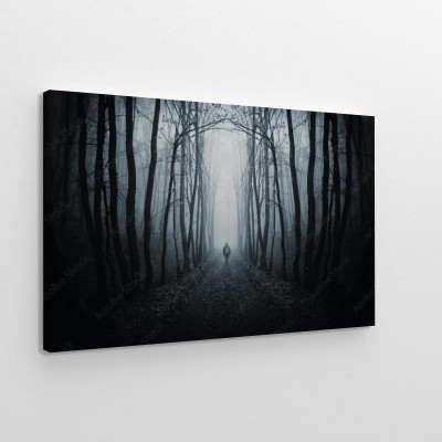 Obrazy do salonu Mroczna ścieżka w dziwnym ciemnym lesie z mgłą