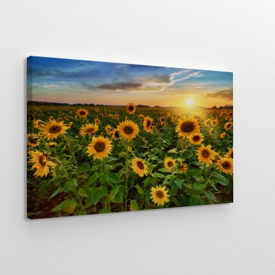 Obrazy do salonu Piękny zmierzch nad słonecznika polem