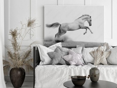 Obrazy do salonu Srebrno-biały ogier na śnieżno białym tle