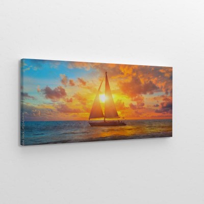 Obrazy do salonu Żaglówka na tle zachodzącego słońca