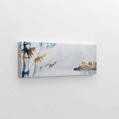 Obraz na płótnie Bambusowe drzewa i wyspa w mgle na białym tle Tradycyjne Chińskie malowidło