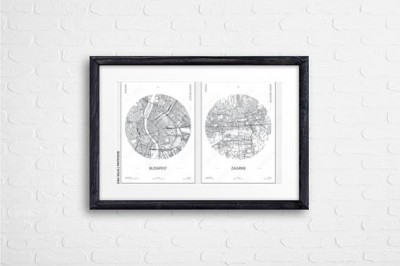Plakat miejski plan ulic miasta Budapeszt i Zagrzeb