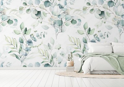 Tapeta malowana akwarelą z wzorem modnych liści w konwencji retro i vintage